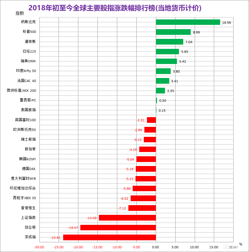 (图3:2018年前三个季度全球主要股指表现)