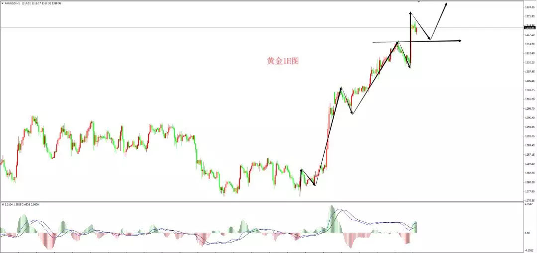多单:1316附近尝试多单,止损1312,目标1322附近。