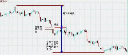 其量度的方法是从突破点开始,到持续性窗口始点的垂直距离,就是未来价格将会达到的幅度。