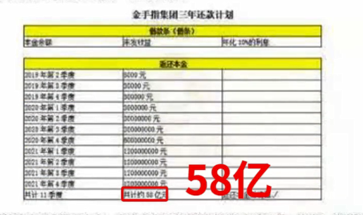 多个投资人提供的一份还款计划书显示,李家诚3月19日曾承诺:三年内赚58亿来弥补“投资人损失”。