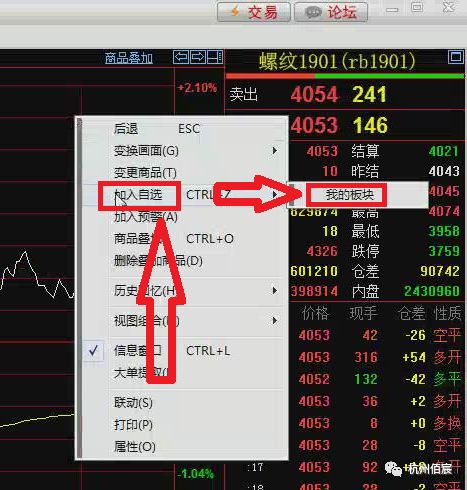 鼠标挪动到“加入自选”、之后把鼠标向右挪动、点击“我的板块”(加入自选)。