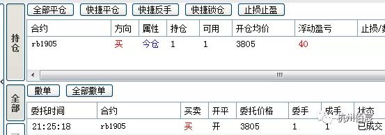 a.合约名称,如当前的螺纹钢主力合约是rb1905(下图紫色箭头);