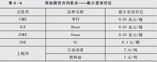 各合约最小变动价位的对比见表4-6。