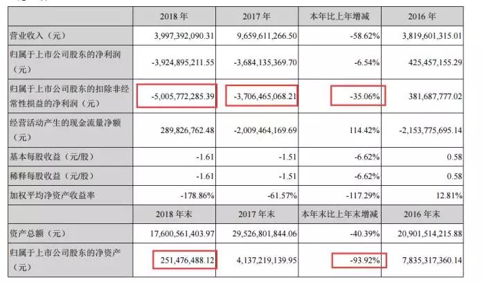 据坚瑞沃能2018年年报,去年公司实现营业收入39.97亿元,同比下滑58.62%;归属于上市公司股东的净利润亏损约39.25亿元,相比2017年亏损36.84亿元亏损幅度再扩大。此外,会计师事务所对上述年报审计后出具了无法表示意见的审计报告。