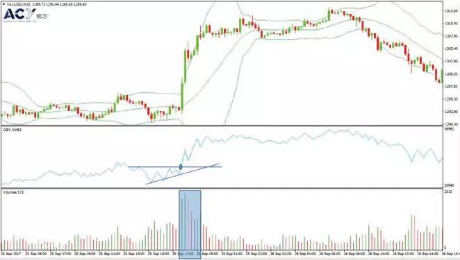2、当汇价下跌,OBV 指标同步向下, 反映在盘面上就是一个下跌动能增加的信号。市场做空动能的释放必然会导致汇价的大幅下跌, 此时, 投资者应该首先想到的是控制风险, 设立好止损位或出局观望。