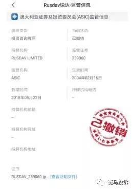 投资者听朋友的介绍认识了锐达平台西南地区的一位姓古客户经理,他跟投资者再三保证锐达是获得澳大利亚ASIC监管资质,非常安全(实际在2018年5月份锐达已脱离监管),并且在中国注册了一家“锐达(上海)信息技术有限公司”。