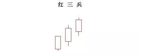 红三兵是一种很常见的K线组合,这种K线组合出现时,后势看涨的情况居多。尽管如此,但我们却很难给红三兵的K线组合形式下一个准确的定义,为了便于大家的判断,我们还是给出一种常见的特征形式。
