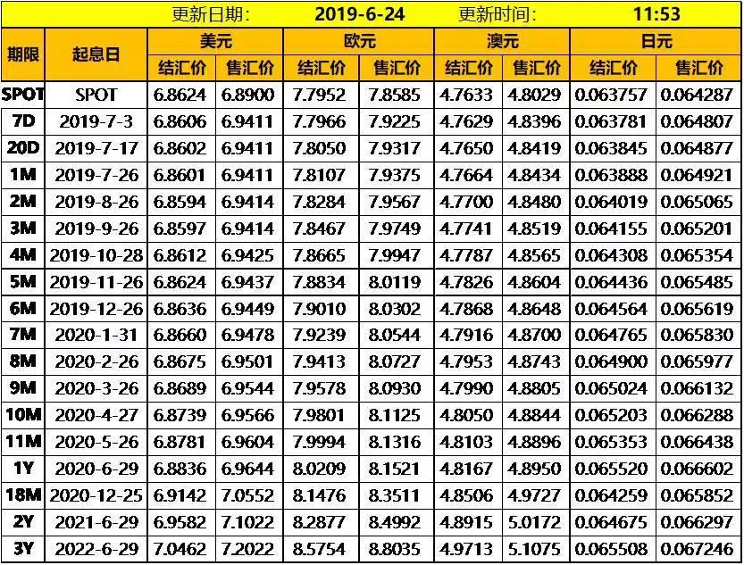 说明:“等价期溢金(售汇)”类似于远期售汇,但价格优于同期远期售汇。到期时若美元/人民币市场汇率低于约定价,按全额以约定价办理售汇交割;若市场汇率高于约定价,则按一定比例以约定价办理售汇交割。