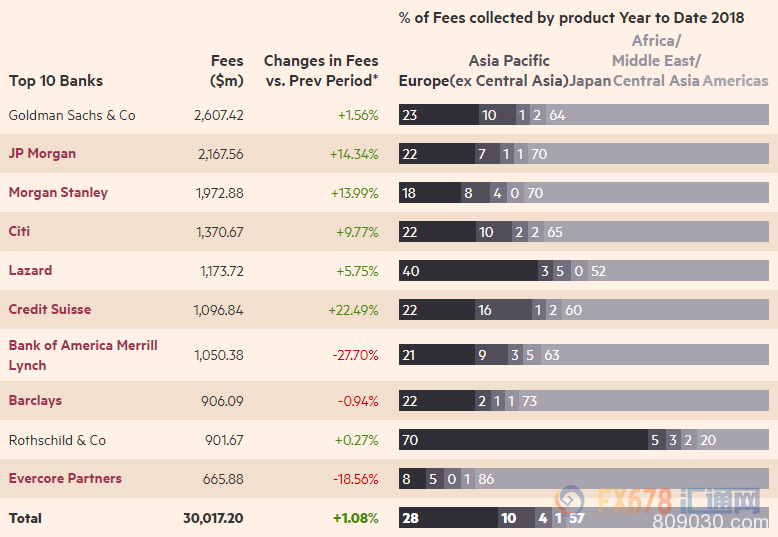 2018全球并购顾问排行榜上,精品银行排位升高,德意志银行跌出前十。但排名前列的,依然是那些耳熟能详的名字。