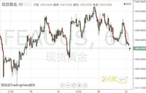 周一(11月25日)亚市早盘,国际现货黄金位于1460.50美元/盎司水平交投。受贸易相关乐观消息影响,市场避险情绪有所降温,上一交易日金价在涨至1473.15美元/盎司高点后一路大幅下挫,本交易日开盘时跳空走低,一度跌穿1460美元关口,盘中最低触及1459.50美元/盎司。