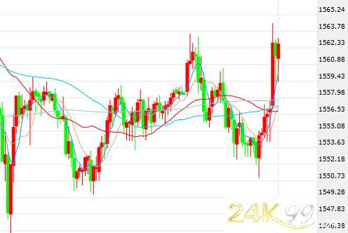 美市盘中,现货金小幅上涨,现交投于1563.78美元/盎司附近,日内最高触及1566.99美元/盎司。