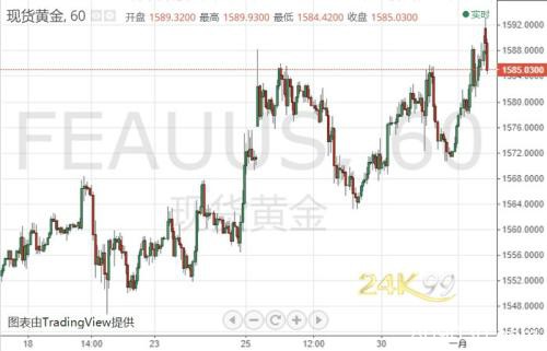 北京时间08:50,现货黄金报1584.70美元/盎司。