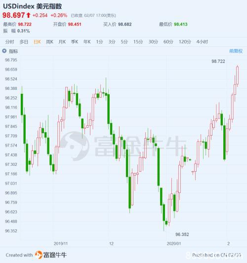 当前,美元指数已经攀升至将近四个月新高。追踪美元兑6种主要货币一篮子汇价的ICE美元指数(简称DXY)2月7日上升至98.70点、创2019年10月15日以来新高。