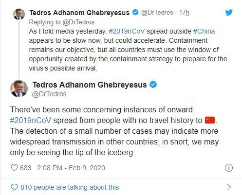 他在推特上写道:“发现少量病例可能表明在其他国家的传播范围更广。简而言之,我们可能只看到了冰山的一角。”