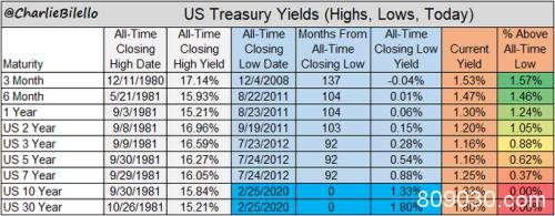 事实上,目前市场避险情绪依然十分浓烈,这从债市的表现已可见一斑。美国10年期公债收益率周二触及纪录低位,因担心新型冠状病毒疫情将对全球经济成长造成重大冲击,加上美国经济数据低于预期,促使交易商继续避险。指标10年期公债收益率午后回落5.5个基点,报1.3221%,较周一继续下滑,盘中一度触及1.3205%的低位。