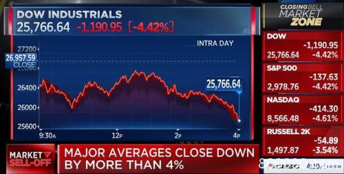 在本周伊始先后经历了黑色星期一和黑色星期二后,也许没有多少人能想到,昨夜这个周四,才是真正可能被载入美股“股灾”史册的日子――美国三大股指当天均创下历史最大单日点数跌幅,标普500指数和纳斯达克综合指数还创下了2011年8月以来最大单日百分比跌幅。