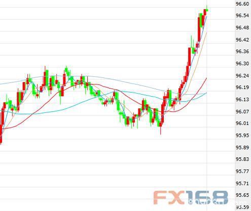 美市盘中,美元指数短线一度拉升逾60点,刷新日高至96.61。
