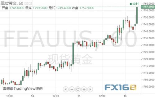 现货黄金突破1755美元/盎司后延续涨势,最高触及1759.90美元/盎司,创2012年10月以来的新高。