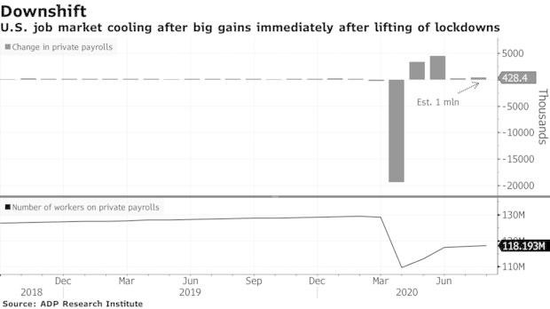 周三公布的数据显示,就业市场正在复苏,尽管速度缓慢。根据ADP的全国就业报告,美国8月份非农私营部门增加了42.8万个工作岗位。这一数字远低于预期的117万个就业岗位。投资者将关注美国劳工部周五发布的8月份就业报告,以进一步了解美国就业情况。