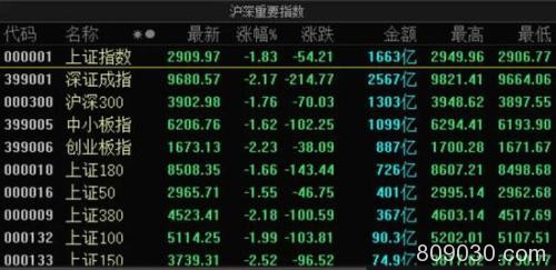 今日,是第11个双十一购物狂欢节,各行各业均大幅降价营销。A股市场也大幅下挫“降价促销”,各主要股指均下跌超1.5%以上。逾250只个股折扣在“95折”以上(跌幅超5%),杭可科技(行情688006,诊股)以近“8.5折”领衔,逾10只个股“9折甩卖”(跌停)。