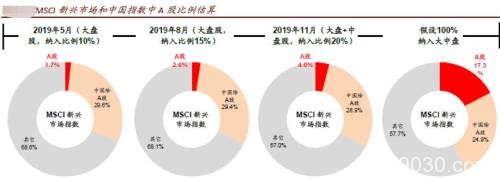星石投资认为,11月的MSCI扩容计划正式执行之后,A股占MSCI全球指数的权重将提升0.22个百分点至0.49%,占MSCI新兴市场指数的权重将上升1.44个百分点至4.90%。目前跟踪MSCI全球指数和新兴市场的资金规模分别约为4.1万亿美元和1.8万亿美元,按照比例折算,此次扩容能够带来的资金规模将在350亿美元左右,折合人民币约2400亿元。