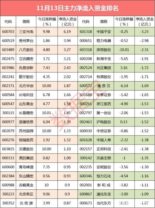 沪指11月13日下跌0.33%,主力资金全天净流出99.84亿元,已连续8个交易日资金呈净流出状态。