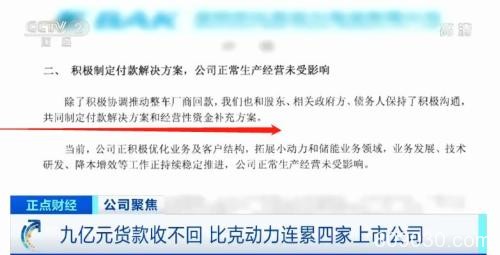 在11月12日晚间,记者联系比克动力希望进行采访,而比克动力在沟通两小时后发布声明对合作伙伴致歉,声明称,正在与债务人等共同制定付款解决方案和经营性资金补充方案。