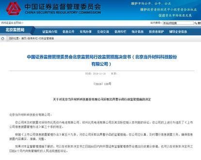 11月19日,据北京证监局网站发布的行政监管措施决定书显示,当升科技因未及时披露对比克动力以及郑州比克电池及其实控人李向前的诉讼,违反上市公司信息披露的相关规定。因此,北京证监局决定对当升科技采取出具警示函的监管措施。