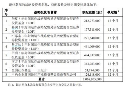 另外两家战略投资者分别为全国社保基金一一三组合及中央企业贫困地区产业投资基金股份有限公司,这两类投资者均较关注具有长期投资价值与稳定分红的优质标的。