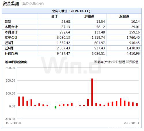 资金方面,周三北向资金净流入23.68亿元,连续20日净流入。