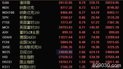 欧洲主要股市英国富时100指数涨0.79%、德国DAX 30指数涨0.57%、法国CAC 40指数涨0.40%。亚洲日韩股市创近一年新高,今早港股恒生指数大幅高开近2%。