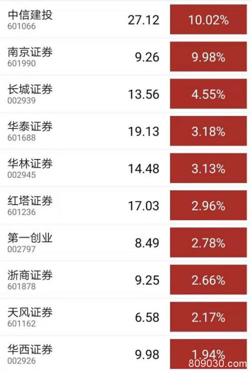 受多重利好消息刺激,今日A股市场活跃,而券商股表现更是亮眼。