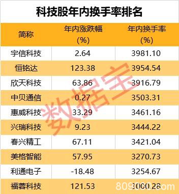 三大科技行业年内换手率超6倍
