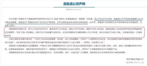 12月21日,酒鬼酒董秘李文生向媒体表示:酒鬼酒公司严禁添加甜蜜素,也从未采购过甜蜜素;酒鬼酒生产销售的所有产品均经过严格检测,并符合国家食品安全相关标准和规定;近年来,酒鬼酒产品经国家及地方各级食品安全监督抽检,合格率 100%。