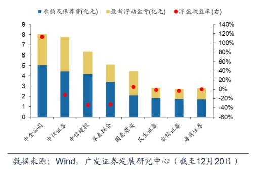 以12月25日收盘价统计,科创板上市股票涉及的27家保荐券商,其跟投股份的账面浮盈合计25.95亿元,平均下来单家券商浮盈9610.14万元。