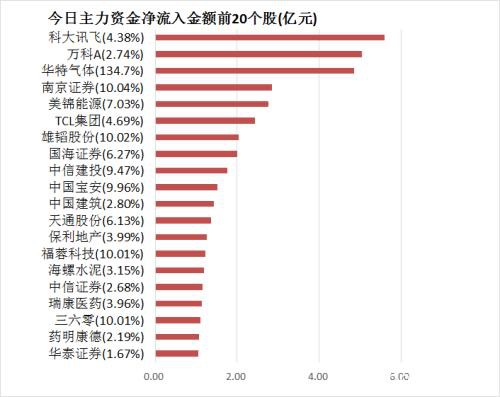 5、科大讯飞(行情002230,诊股)主力资金净流入5.60亿元居首