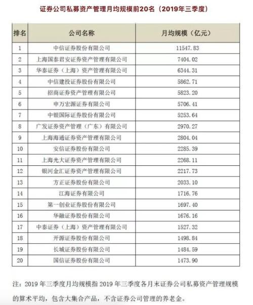12月30日晚间,中国基金业协会披露了三季度证券公司私募资产管理月均规模和主动管理的前20名名单。