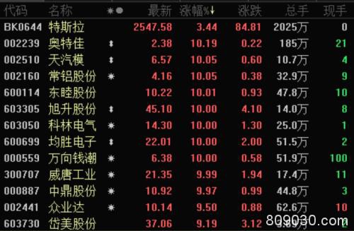1月7日,马斯克现身特斯拉上海工厂,出席中国制造Model 3向社会用户的首次交付仪式。而在资本市场,相关概念股已连续多个交易日被热炒。今日,在两市震荡走弱的背景下,特斯拉概念再度发力,奥特佳、天汽模、常铝股份(行情002160,诊股)、旭升股份、科林电气(行情603050,诊股)、威唐工业(行情300707,诊股)、云海金属(行情002182,诊股)、众业达(行情002441,诊股)、东睦股份(行情600114,诊股)、北特科技(行情603009,诊股)涨停。