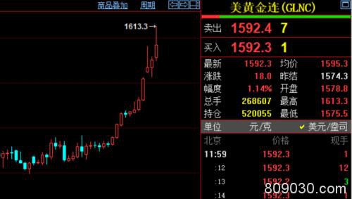 避险情绪的升温,令黄金价格也大幅飙涨,今早亚洲市场开盘,金价一度升破每盎司1600美元关口,为2013年以来首次。上期所黄金期货主力合约最高上涨至264.44元/克,为去年9月以来最高。