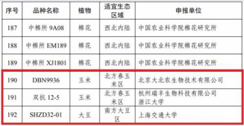 其中大北农申报的DBN9936抗虫耐草甘膦玉米、瑞丰生物和浙大联合申报的双抗12-5抗虫耐草甘膦玉米和上海交大申报的SHZD32-01抗草甘膦转基因大豆最令市场关注。