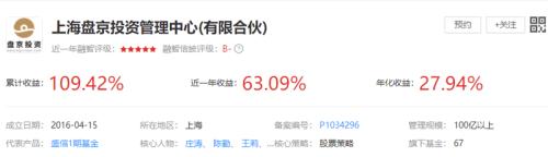 数据显示,截至2019年12月底,盘京投资、景林资产、淡水泉及拾贝投资等百亿级私募的整体平均收益率分别高达63.09%、54.83%、44.69%、27.17%。