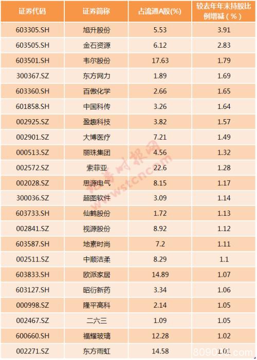 从持股占流通股比例变动情况来看,2020年1月9日,22股北上资金持股占流通股比例较去年年末增加超过1个百分点以上,其中旭升股份(行情603305,诊股)的北上资金增持比例达3.91个百分点,排名首位。