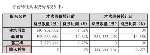 1月10日盘后,东华软件(行情002065,诊股)公告,公司控股股东、实际控制人及其一致行动人建水同欣、薛向东、郭玉梅与腾讯科技签署了《股份转让协议》,拟将其合计持有的公司1.57亿股无限售流通股份,协议转让给腾讯科技,该股份占公司总股本的5.04%。