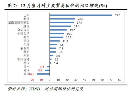 (一)受春节因素影响出口前置,对主要贸易伙伴出口增速全面提高