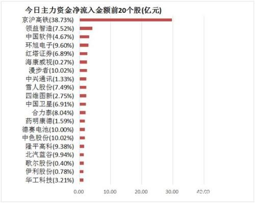 5、京沪高铁(行情601816,诊股)主力资金净流入29.71亿元居首