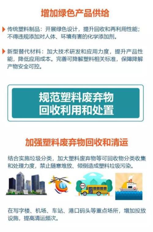 《意见》提出,禁止生产和销售厚度小于0.025毫米的超薄塑料购物袋、厚度小于0.01毫米的聚乙烯农用地膜。禁止以医疗废物为原料制造塑料制品。全面禁止废塑料进口。到2020年底,禁止生产和销售一次性发泡塑料餐具、一次性塑料棉签;禁止生产含塑料微珠的日化产品。到2022年底,禁止销售含塑料微珠的日化产品。