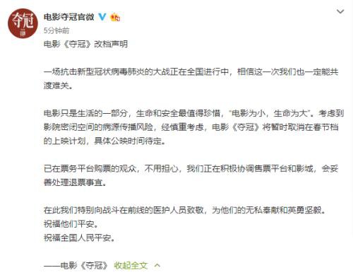 1月23日,多部贺岁档电影先后宣布撤档,其中包括《姜子牙》、《迓琛贰《唐人街探案》、《紧急救援》等多部备受期待的影片。