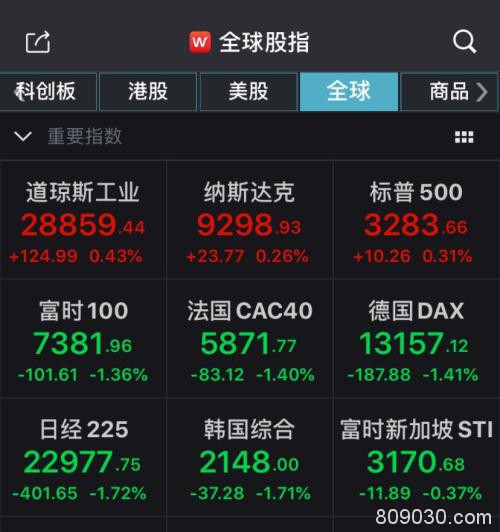 而当日,交易时间较早的亚太及欧洲市场则全线大幅收跌。截至当日收盘,德国DAX指数跌1.41%,报13157.12点;法国CAC40指数跌1.40%,报5871.77点;英国富时100指数跌1.36%,报7381.96点;日经225指数和韩国综合指数均跌逾1.70%,