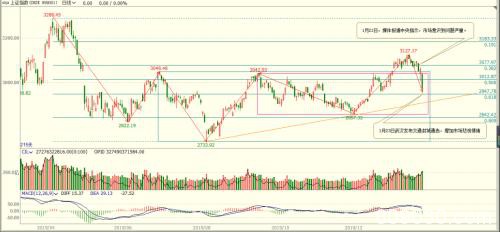 上证指数日K线图上呈现一个明显的周期规律,呈现50-80-50-80(个交易日)的交替峰谷循环规律。根据这个规律可以预测1月中下旬出现波峰(小型顶部),如果本次峰谷循环继续是50个交易日左右,则大盘节后仍将调整2~3周,完成50个交易日左右的小型峰谷循环,至2月中下旬完成调整,然后进入下一个80个交易日左右的中型峰谷循环。