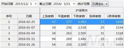 A股历史上,千股以上的跌停往往是系统性风险,让投资者记忆犹新的是2015年6、7月份和2016年1、2月份的两次市场集体大跌。当前A股上市公司数有3700多只,2月3日跌停数为3200多只,占全部A股数量超85%,而此前最多的一次是2015年6月26日,有超过2000只个股跌停,占当时A股总数的约73%。